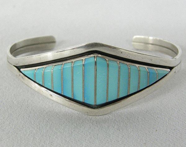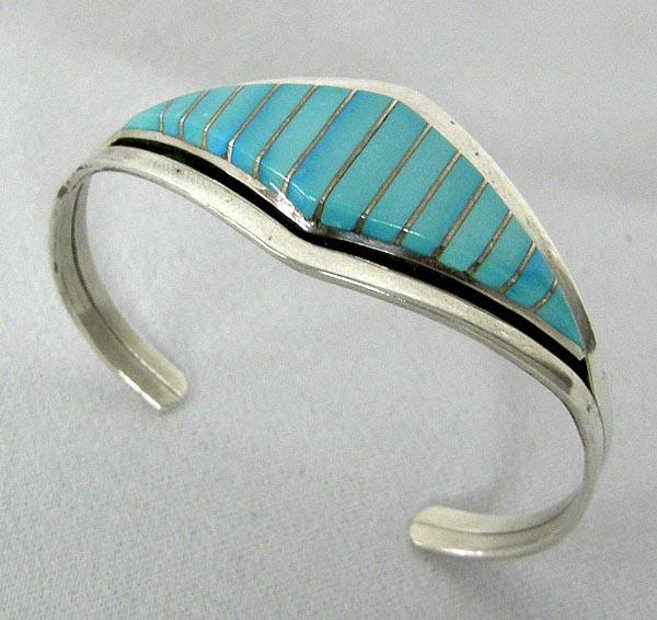 Native American Navajo Sterling Silver Channel Inlay Turquoise Bracelet, measures end to end inside 6''. Buyers Pay Actual Shipping and Handling Charges(see terms and conditions for more information)