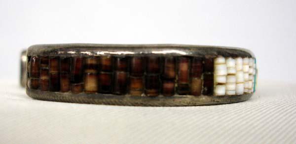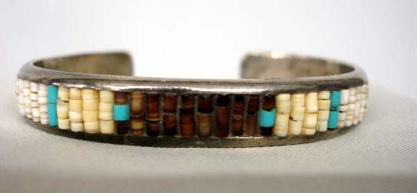 Native American Navajo Inlay Heishi Bracelet. Hallmark on inside, ''C''. Measures 6.25'' inside including opening and 3/8'' wide. Buyers Pay Actual Shipping and Handling Charges(see terms and conditions for more information).