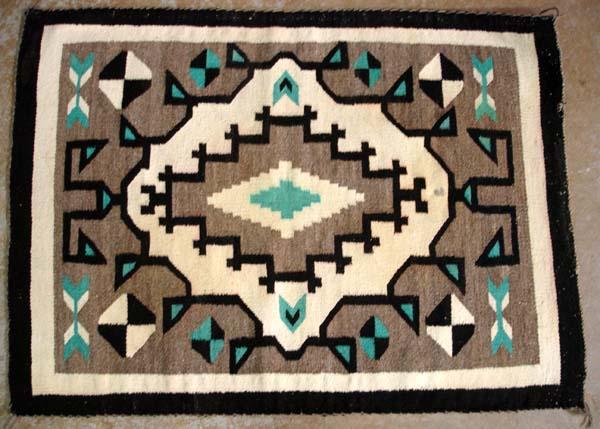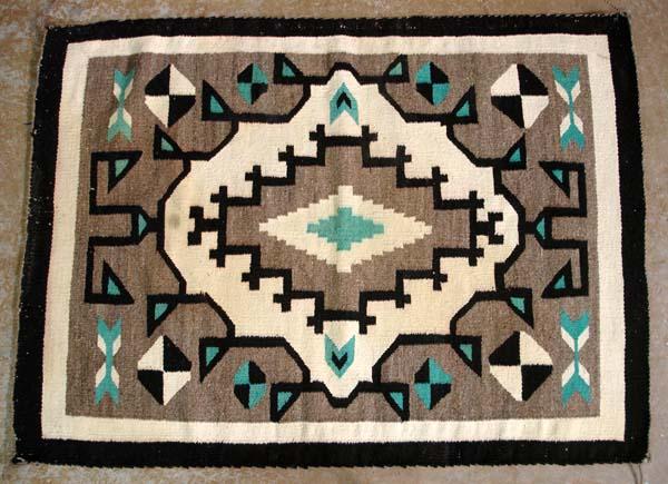 Native American Navajo Klagetoh Rug, homespun, some staining and selvage damage, measures approx. 46'' x 33.5''. Buyers Pay Actual Shipping and Handling Charges(see terms and conditions for more information)
