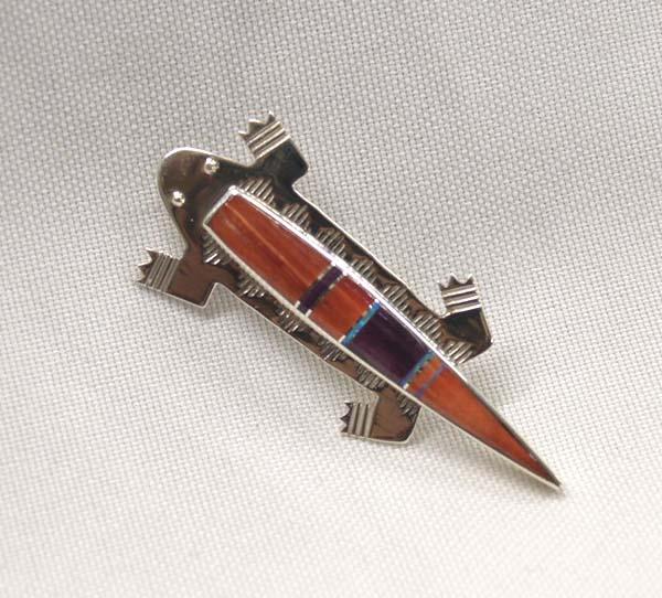 Native American Navajo Silver, Red Shell, Sugilite Inlay Lizard Pin/Pendant by Robert Vandever, measures approx. 2 1/8''L x 7/8''W. Buyers Pay Actual Shipping and Handling Charges(see terms and conditions for more information).