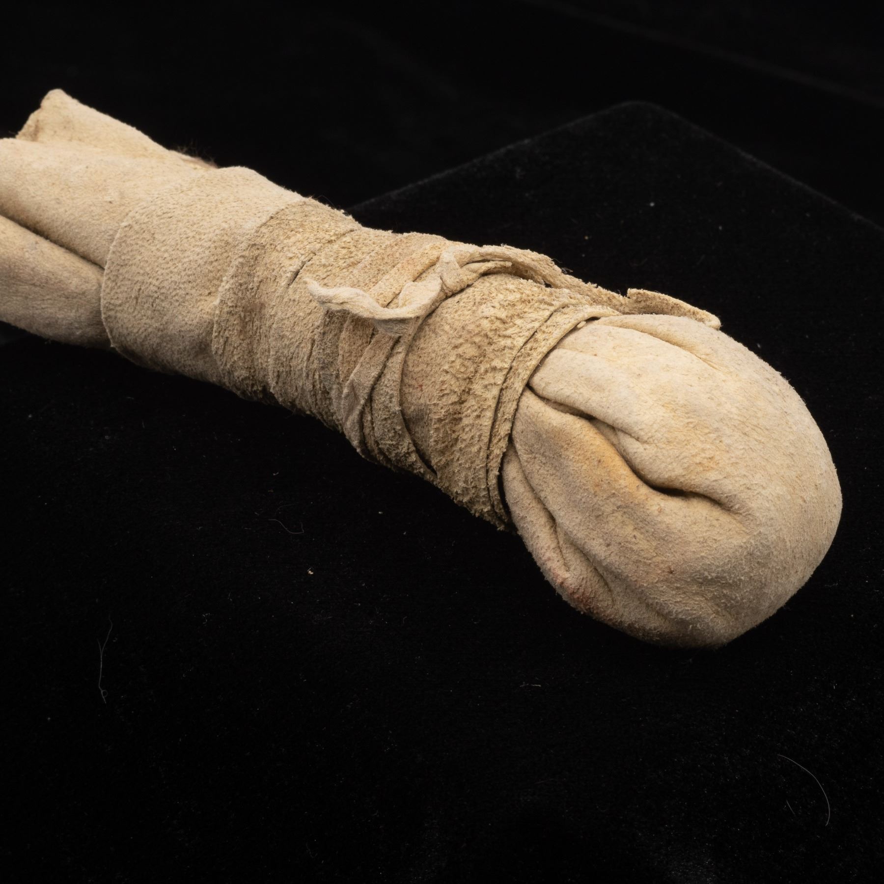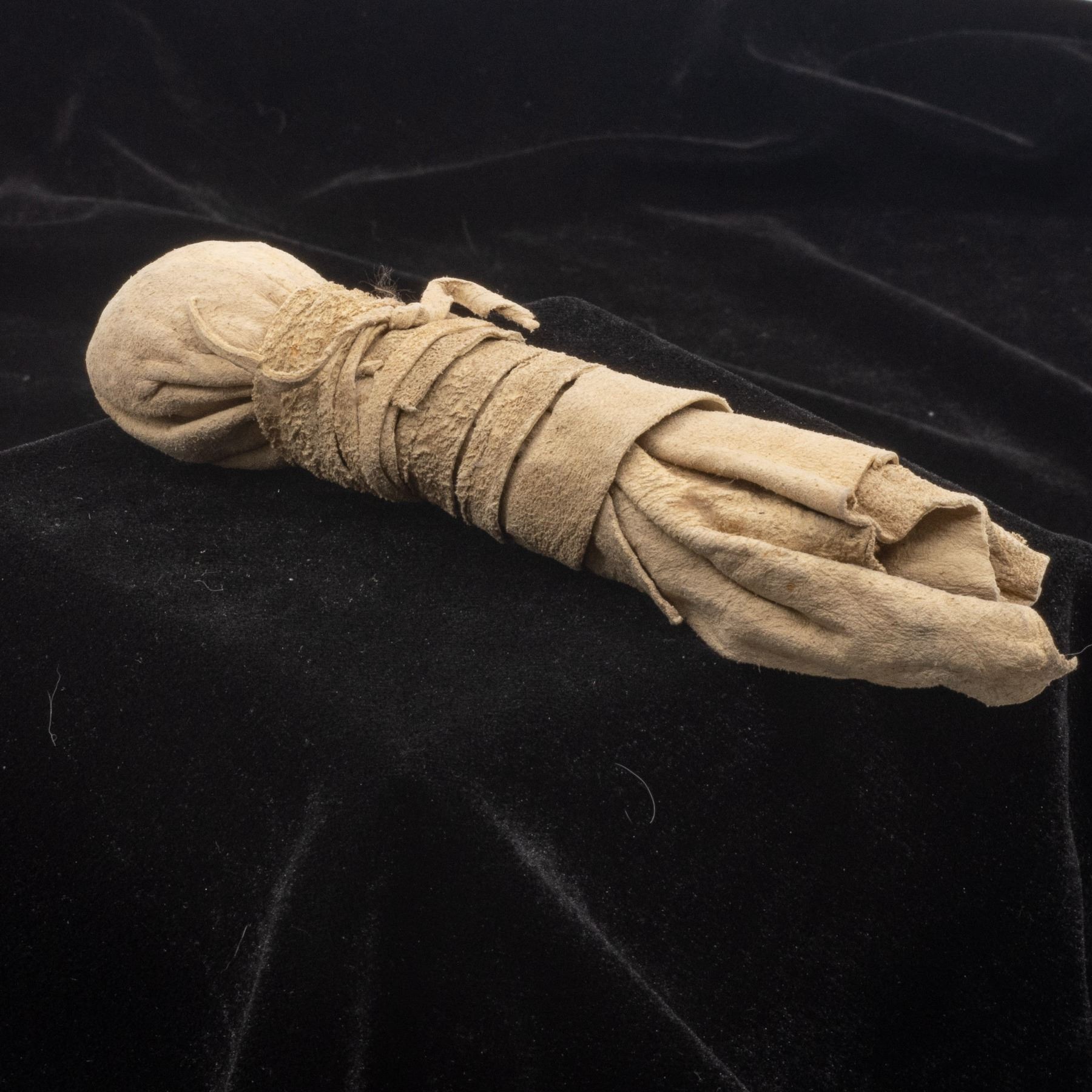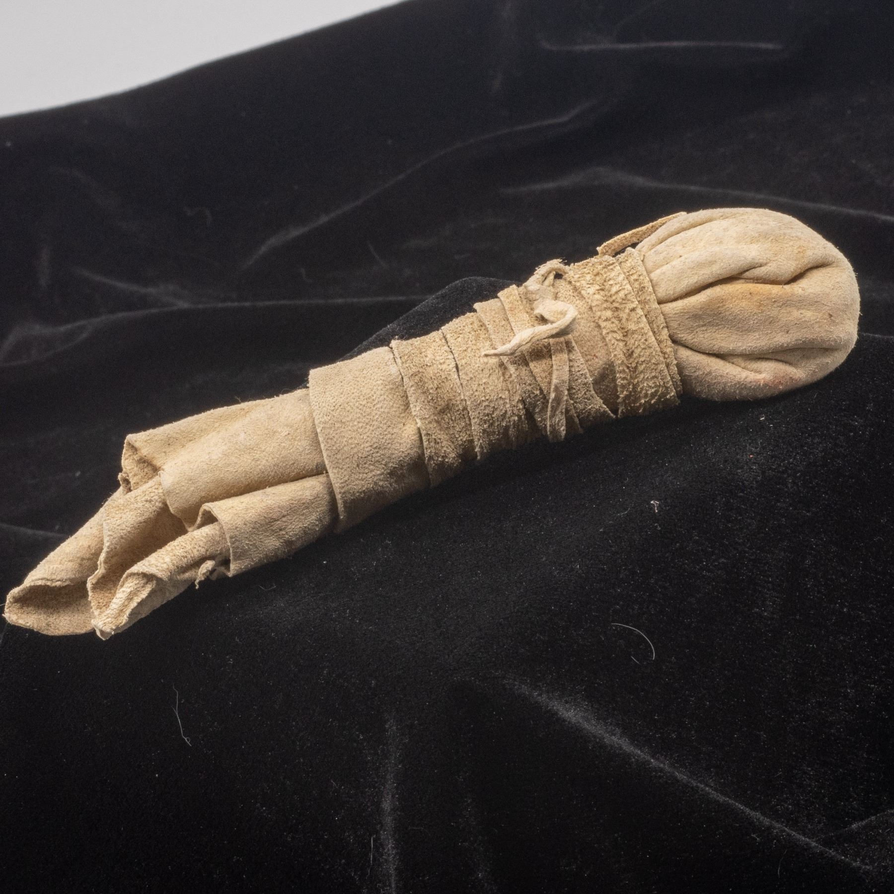 Native American Navajo Medicine Bundle, measures 7''L x 2''W, FYI: ''Among the contents may be herbs, rattles, fetishes, small pottery bowls, whistles, shells, feathers, unraveling cords, reeds, small individual pouches of sacred pollen or other substances and the like. The bundle is assembled over a period of time, through much effort and expense on the part of those involved.''