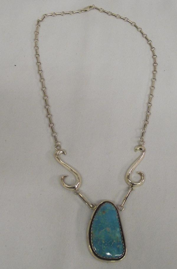 Native American Navajo Sterling Silver Turquoise Necklace by J. Begay. Hand made chain. Necklace measures approx. 20'', pendant measures approx. 1 3/4''. Buyers Pay Actual Shipping and Handling Charges(see terms and conditions for more information).