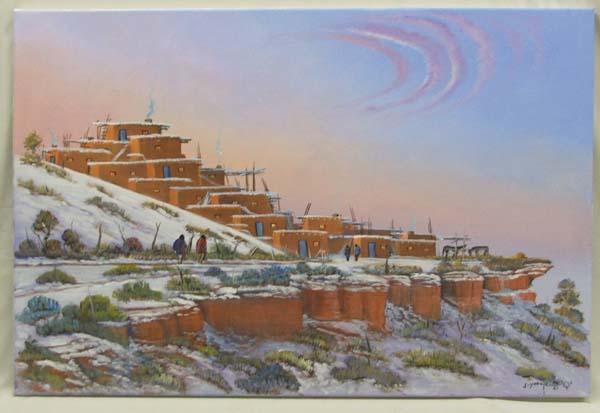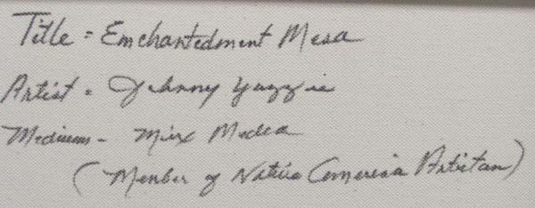 Navajo Original Painting ''Enchantment Mesa'', Mixed Media on Canvas, Unframed, Measures approx. 24x36''. By Navajo Artist Johnny Yazzie. Artist is a member of the ''Native American Artisans''. Buyer Pays Actual Shipping and Handling. See Terms and Conditions for further information.