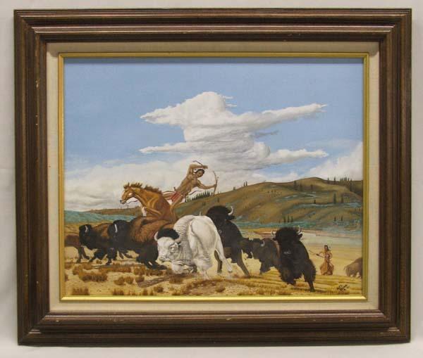 Framed Navajo Original Painting of White Buffalo Hunt called ''Time and Time Again'' by Clarence Tsosie, measures approx. 15.5 x 19.5'' Framed Original Oil on canvas. Buyer pays actual Shipping and Handling. Check terms and conditions for further information.