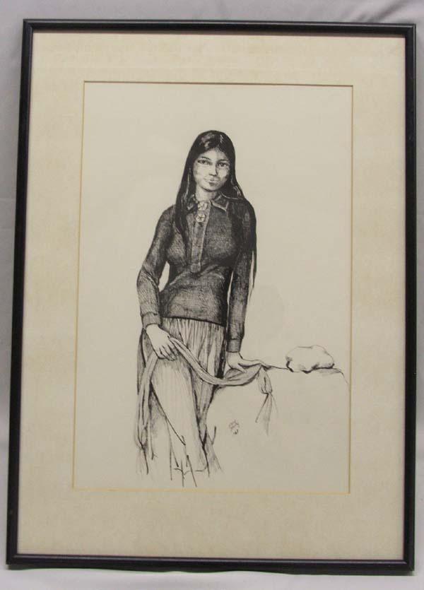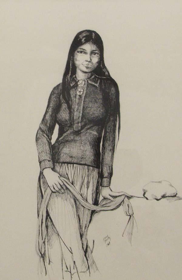 Navajo Original Pen & Ink by Mary Morez with COA, visual measures approx. 18 x 12''. Buyers Pay Actual Shipping and Handling Charges(see terms and conditions for more information)