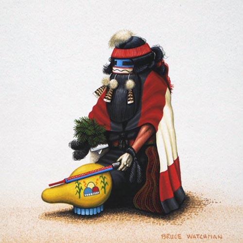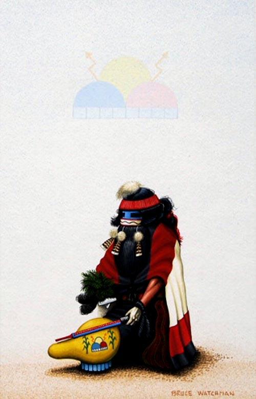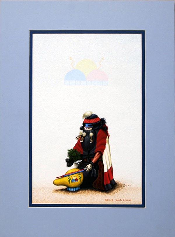 Native American Navajo Painting by Watchman, measures approx. 11'' x 7'', Matted signed by artist Bruce Watchman. Buyers Pay Actual Shipping and Handling Charges(see terms and conditions for more information)