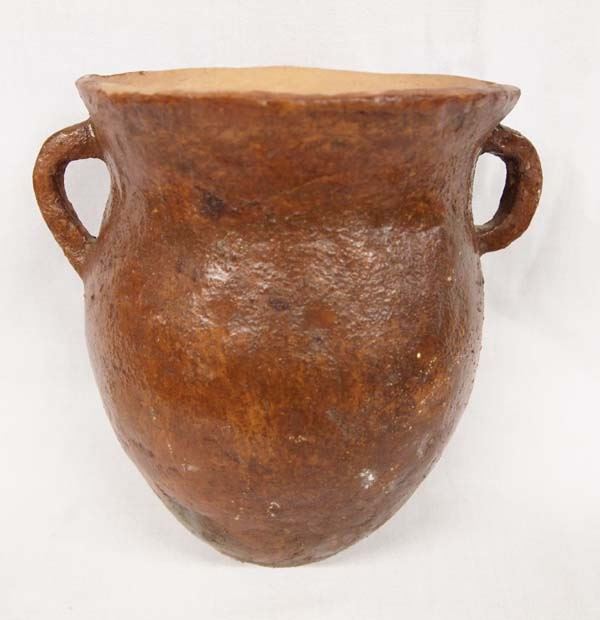 Native American Navajo Pottery Jar, Double Handled, measures 8'' x 9'', dime sized worn spot near bottom of jar
