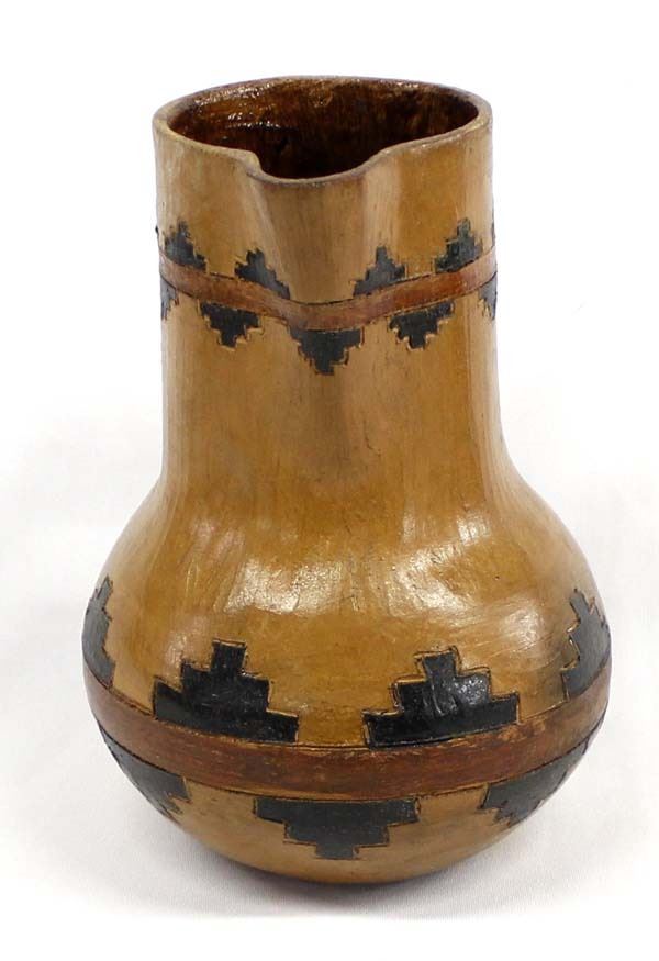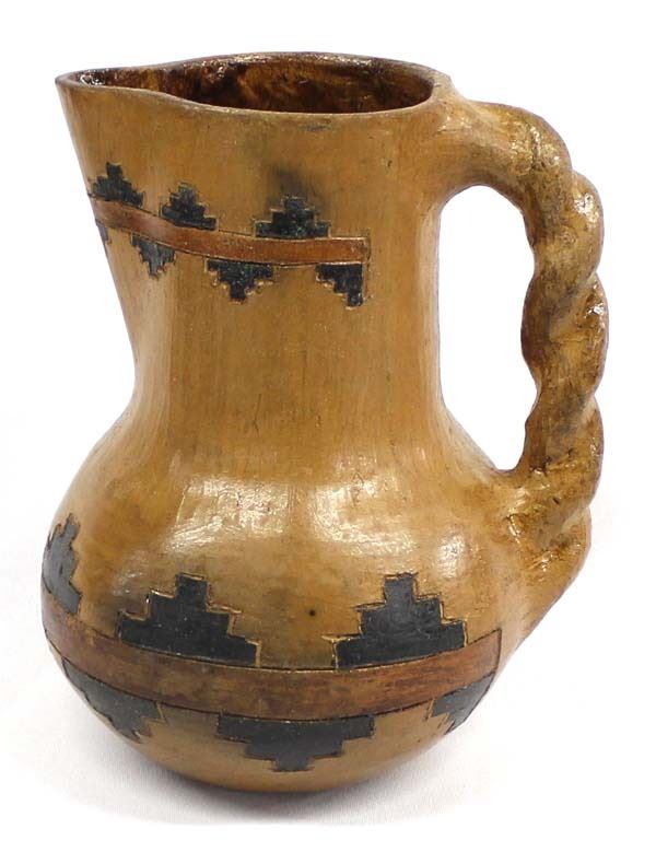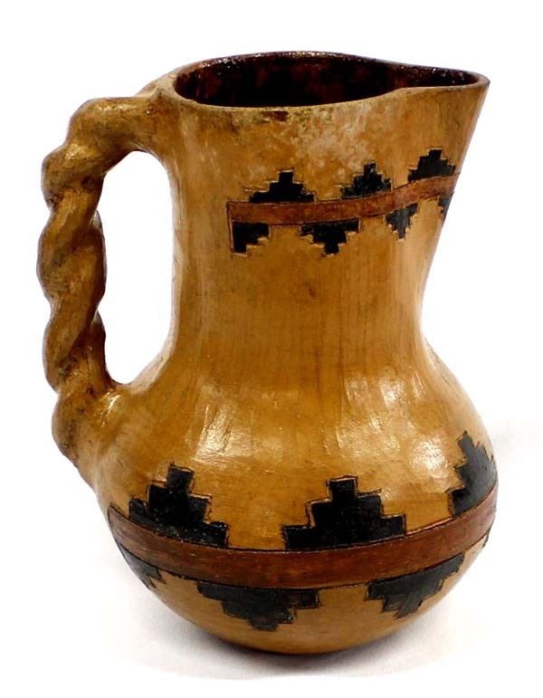 Native American Navajo Pottery Pitcher, measures 6'' x 9'' x 7'', carved designs