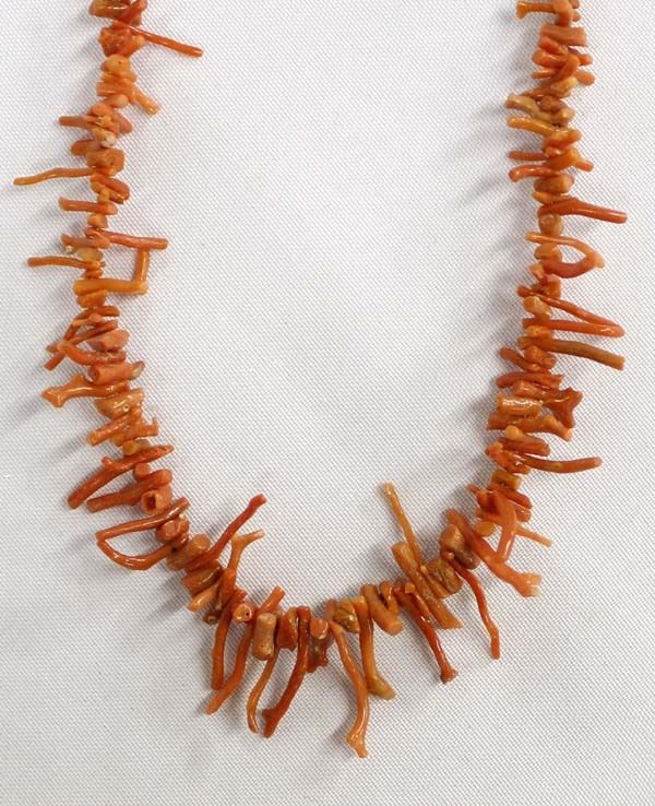 Native American Navajo Red Branch Coral Necklace, measures 20''L end to end