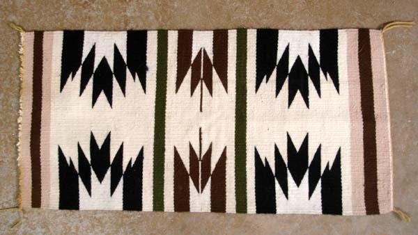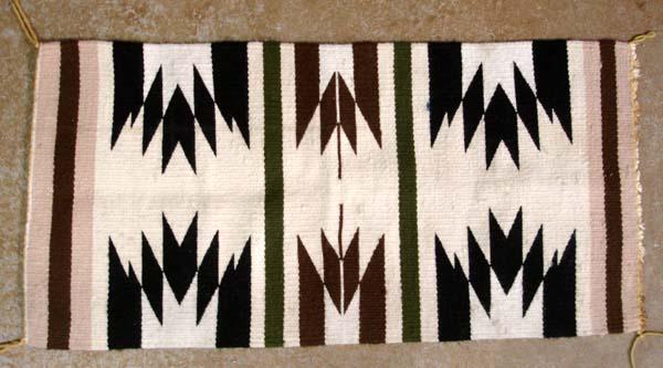 Native American Navajo Rug, slight staining and one end unfinished, measures approx. 37'' x 18''. Buyers Pay Actual Shipping and Handling Charges(see terms and conditions for more information)