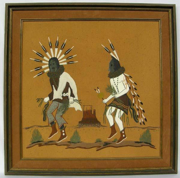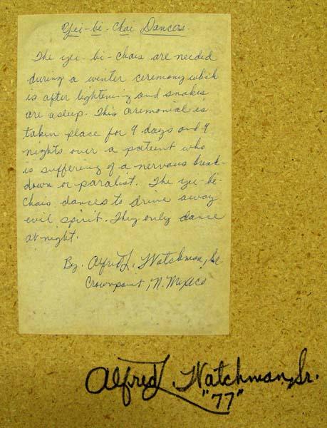Framed Navajo Sand Painting Signed Alfred Watchman Sr., 1977 Crownpoint New Mexico. Visual measures approx. 17.5''Hx17.5''W. Buyers Pay Actual Shipping and Handling Charges(see terms and conditions for more information).