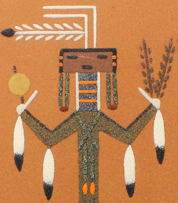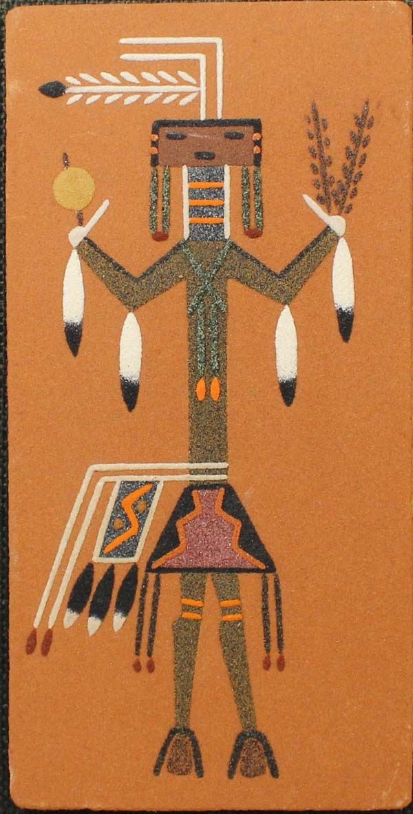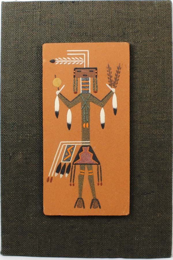 Native American Navajo Sand Painting, mounted on burlap covered board, painting measures 6''W x 11.75''L, overall measurement of 18''L x 12''W