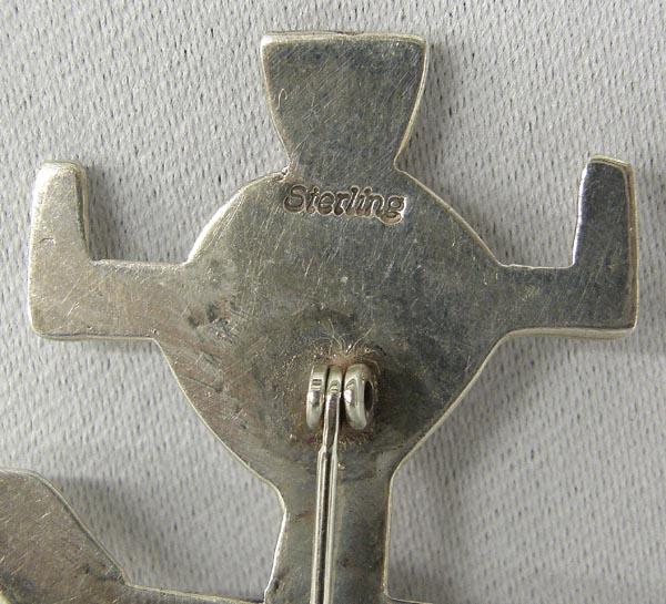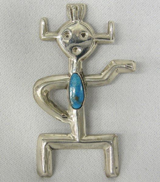 Native American Navajo Silver & Turquoise Sandcast Petroglyph Pin of Yei Figure 2002, measures 2.5'' L x 1.5'' W. Buyers Pay Actual Shipping and Handling Charges(see terms and conditions for more information).