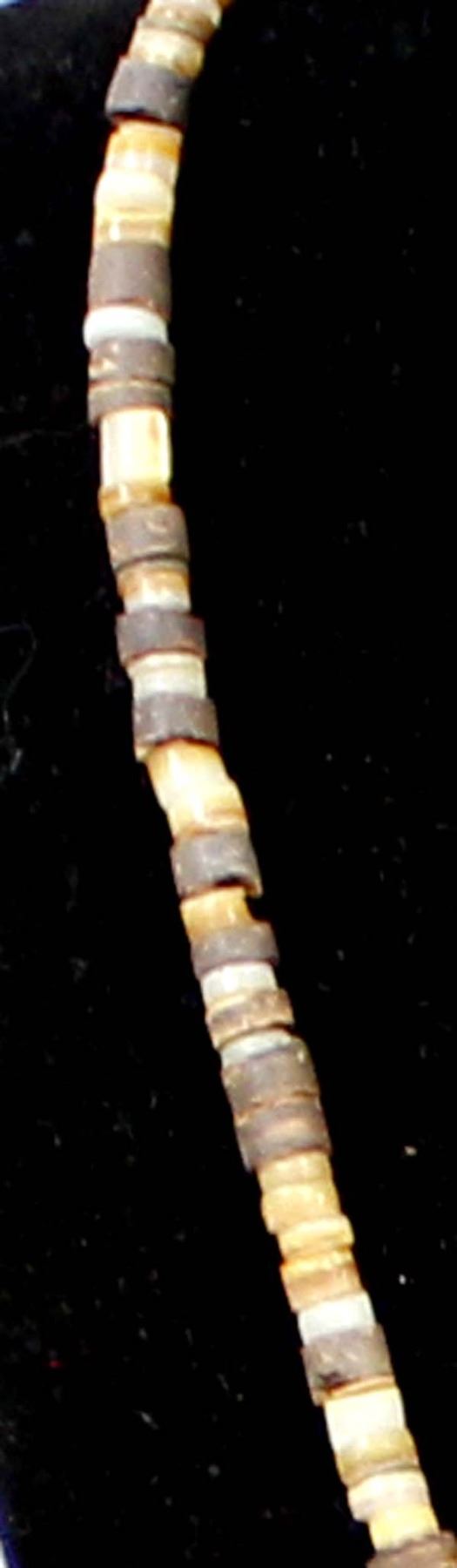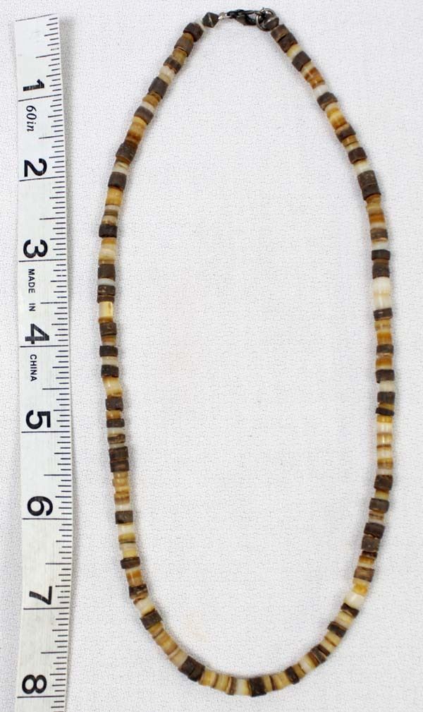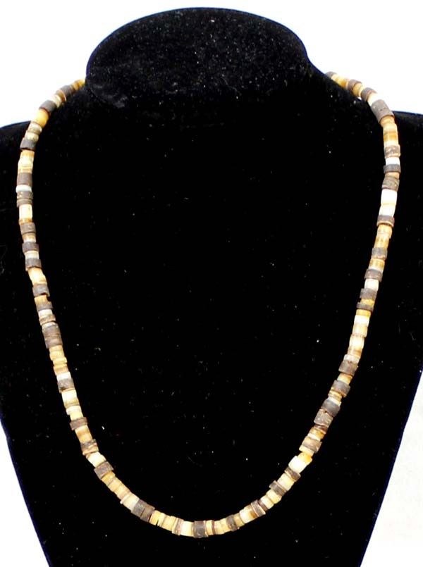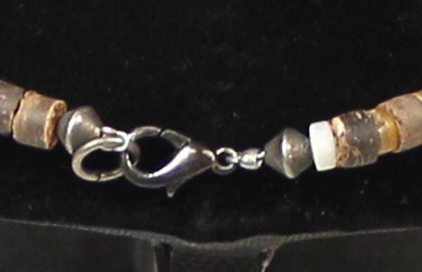 Native American Navajo Shell Heishi Necklace, measures 16''L end to end, lobster claw closure, 2 sterling accent beads