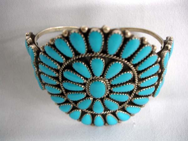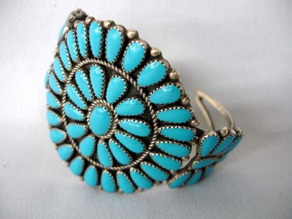 Native American Navajo Sterling Silver Turquoise Cluster Bracelet. Measures 6.5'' inside including opening. and the cluster setting measures 4.5''x2.5'' overall. Buyers Pay Actual Shipping and Handling Charges(see terms and conditions for more information).