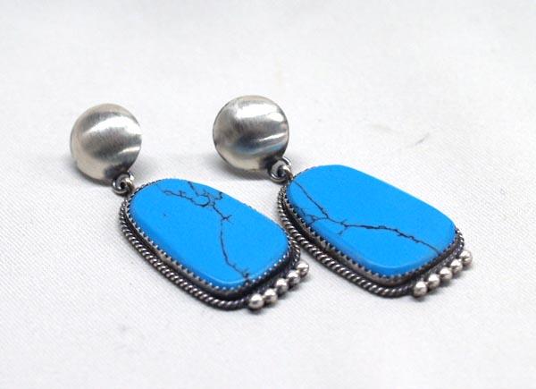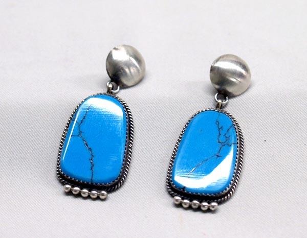 Navajo Silver Turquoise Earrings by Selena Warner. Height/Width in Inches of earrings is 2-1/8x7/8. Buyers Pay Actual Shipping and Handling Charges(see terms and conditions for more information).