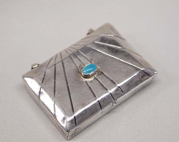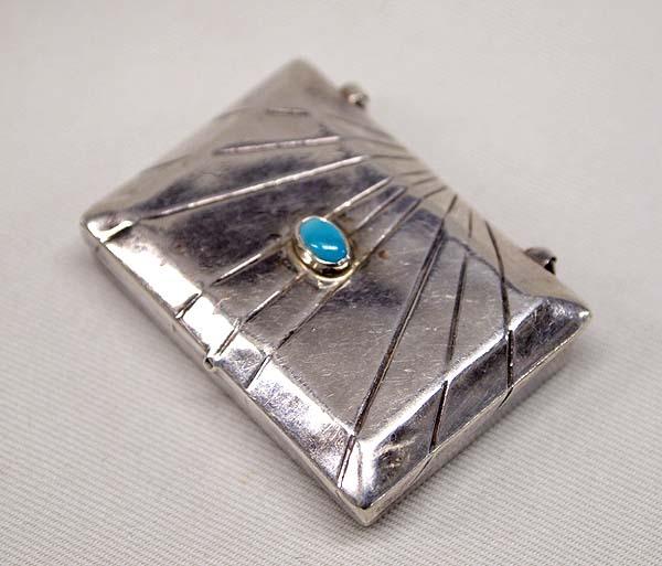 Navajo Silver Hinged Box With Turquoise Nugget. Measures 1-5/8''x1-1/8''. Buyers Pay Actual Shipping and Handling Charges(see terms and conditions for more information).