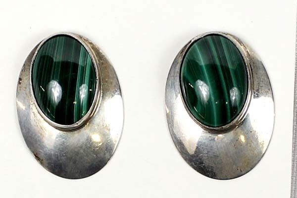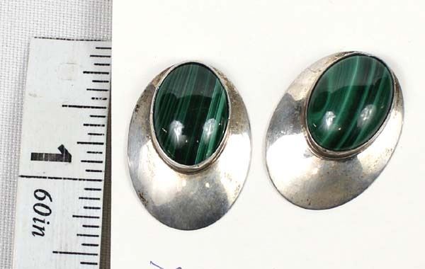 Native American Navajo Sterling Silver Malachite Earrings, stamped sterling, measure .75'' x 1'', beautiful banded malachite