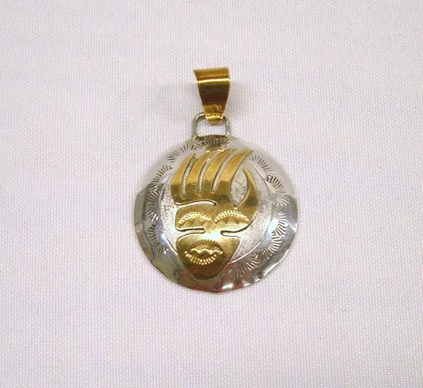 Native American Navajo Sterling Silver with Gold Overlay Bear Claw Pendant. Stamped Sterling and 1/20 12K G.F. 1.5 wide by 2'' long. Buyers Pay Actual Shipping and Handling Charges(see terms and conditions for more information).