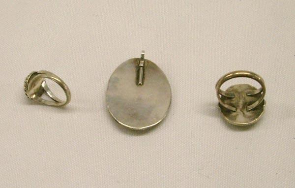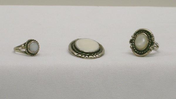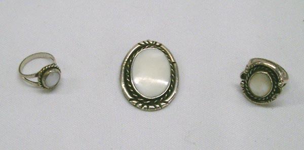 Native American Navajo Mother of Pearl & Sterling Silver Pendant with 2 matching rings. Pendant Height 1.5 /Width 1 in Inches. Largest stone 1'' x 3/4''. Rings size 4.5 and 7. Buyers Pay Actual Shipping and Handling Charges(see terms and conditions for more information)