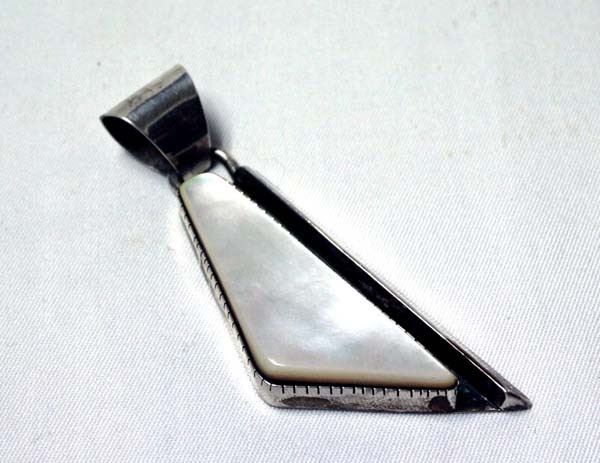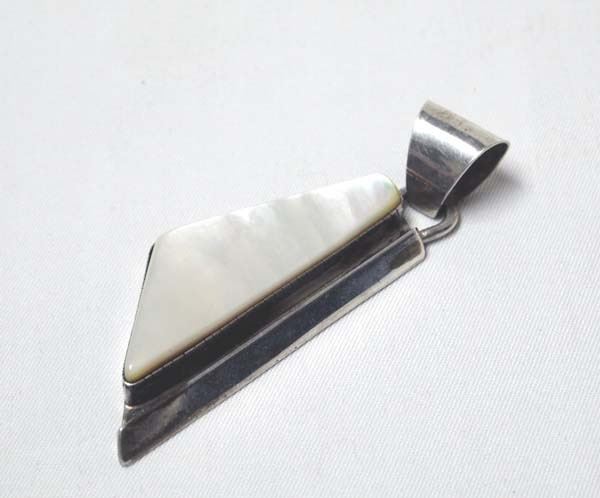 Big, Bold, and Beautiful Native American Navajo Silver and Mother of Pearl Pendant, measures 4''L x 1.25''W, hallmarked and stamped sterling, 47.33g in total wt.