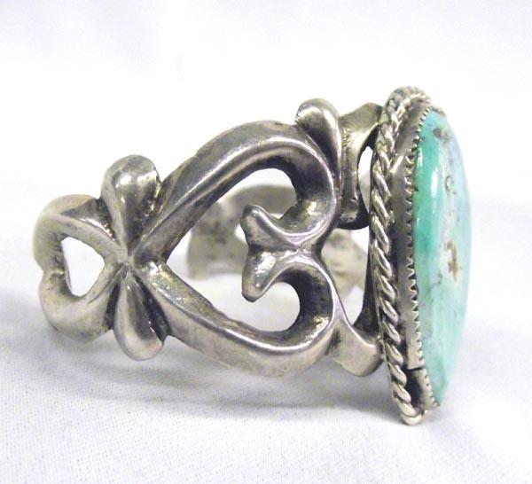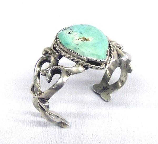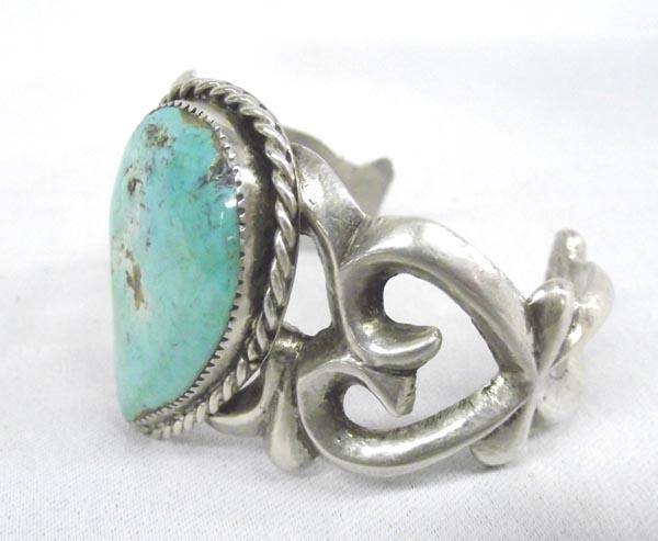 Native American Navajo Silver Sandcast Bracelet, sterling, natural Nevada turquoise, matrix is rough to the touch, measures approx. 6.25'' inside x 1 5/8''W. Buyers Pay Actual Shipping and Handling Charges(see terms and conditions for more information)