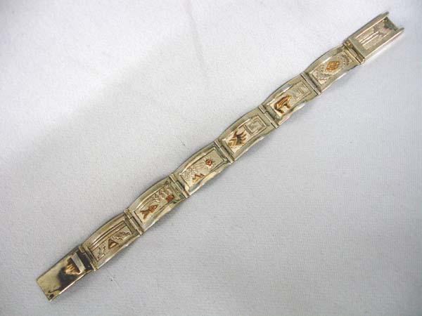 Navajo Silver & Gold Storyteller Link Bracelet. Stamped on the back ''1/20 12K G.F. Sterling'' and the Hallmark, ''A''. Measures 8-1/8''Lx1/5''W. Buyers Pay Actual Shipping and Handling Charges(see terms and conditions for more information).