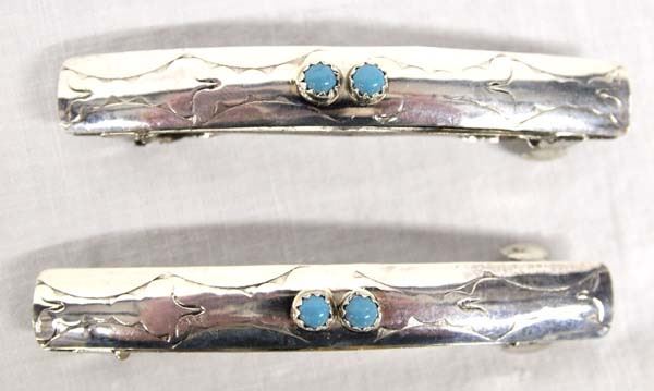 Native American Navajo Sterling Silver Turquoise Barrettes, measures 2.75''L x 3/8''W, 10.08g in total wt.