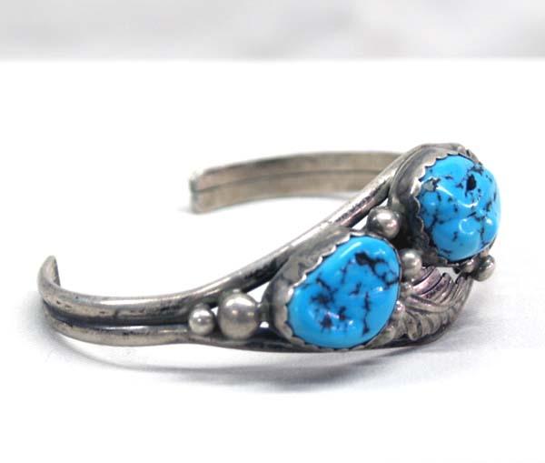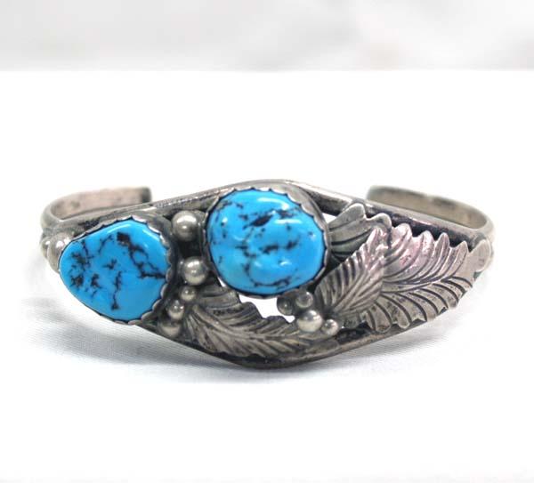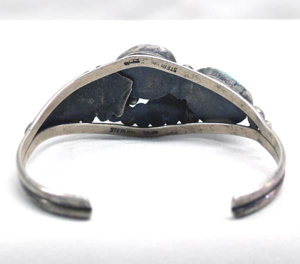 Native American Navajo Silver Turquoise Bracelet Hallmarked. Measurement in Inches - Inside Length(Including Opening) 6.75'' x 1'' Width, largest stone measures approx. .5'' x .75''. Buyers Pay Actual Shipping and Handling Charges(see terms and conditions for more information).