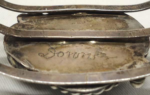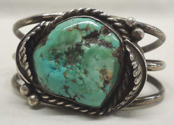 Native American Navajo 3 Band Sterling Silver Bracelet with Natural Nevada Turquoise, has Hallmark ''Donna''. Measurement in Inches - Inside Length(Including Opening) 5 1/2'' x 2 1/3'' Width, nugget measures approx. 1 1/8'' x 1 1/4''. Buyers Pay Actual Shipping and Handling Charges(see terms and conditions for more information).