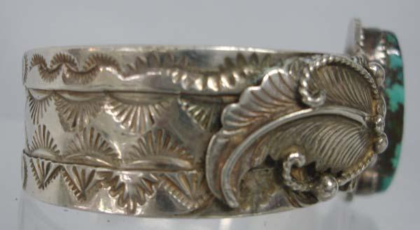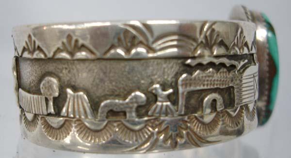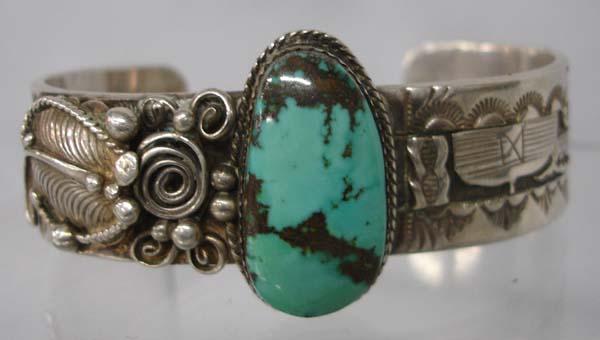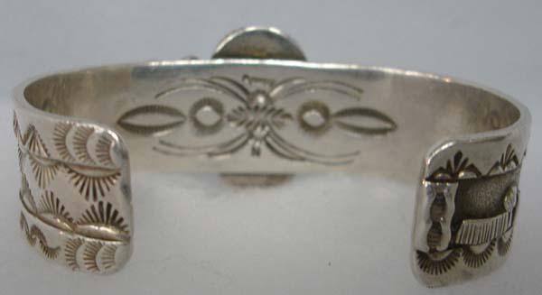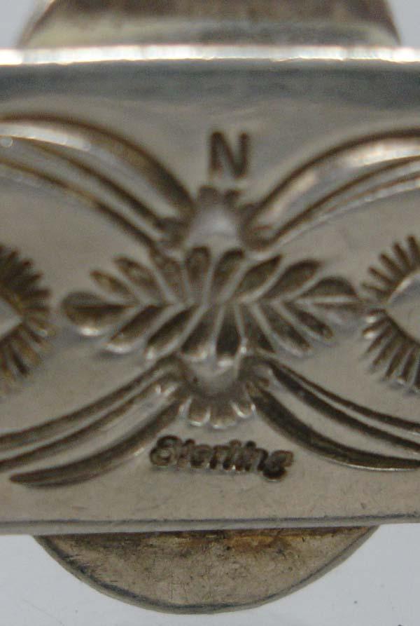 Native American Navajo Silver Turquoise Bracelet. Is stamped ''Sterling'' and the hallmark, ''N'' on the back. Measures 7'' inside including opening and 0.75'' wide. Buyers Pay Actual Shipping and Handling Charges(see terms and conditions for more information).