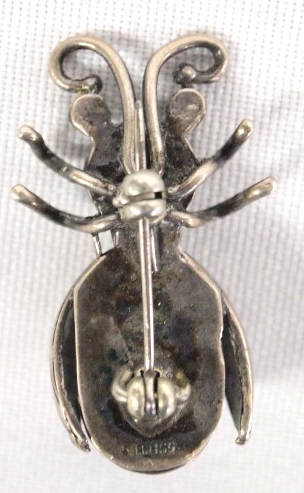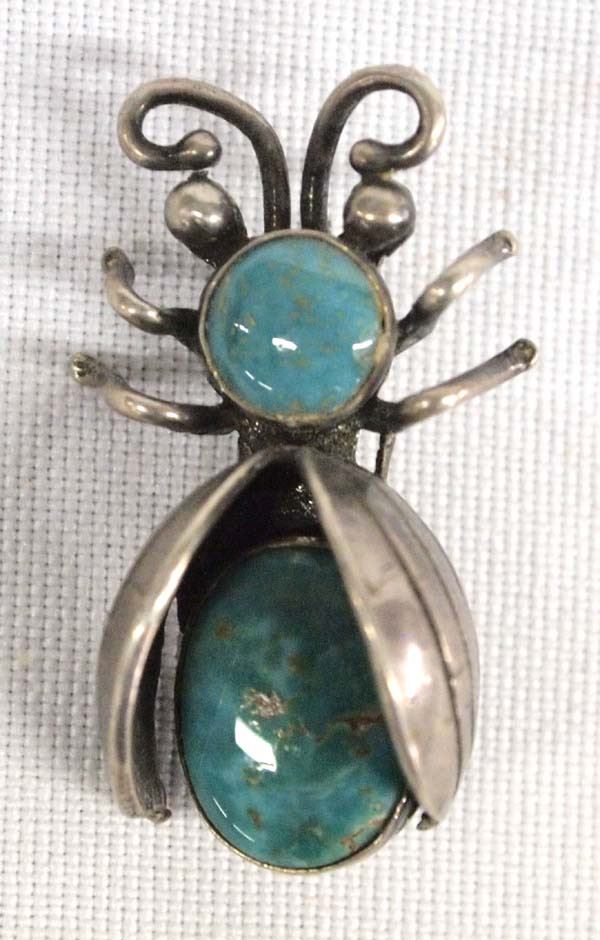 Native American Navajo Silver Turquoise Bug Pin, measures 5/8''W x 1.5''L, stamped sterling
