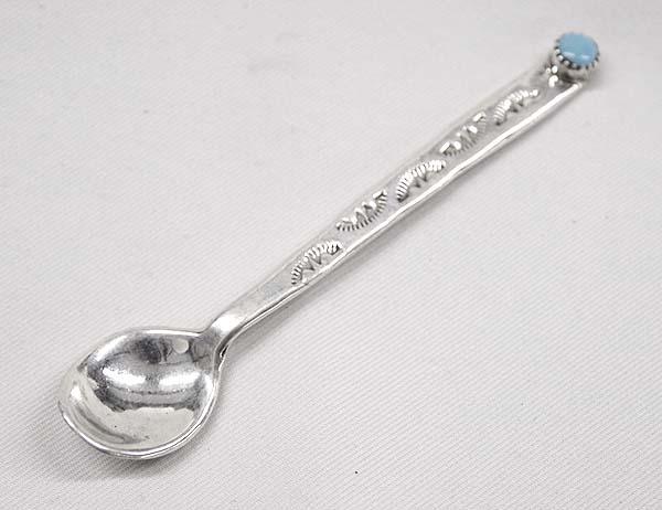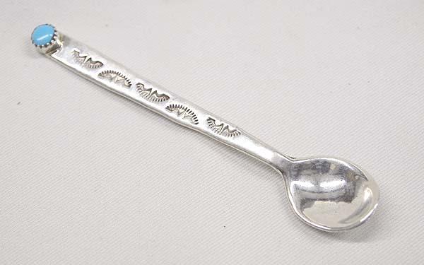 Native American Navajo Silver Spoon. Measures approx. 3 1/3'' long. Turquoise stone on one end. Buyers Pay Actual Shipping and Handling Charges(see terms and conditions for more information).