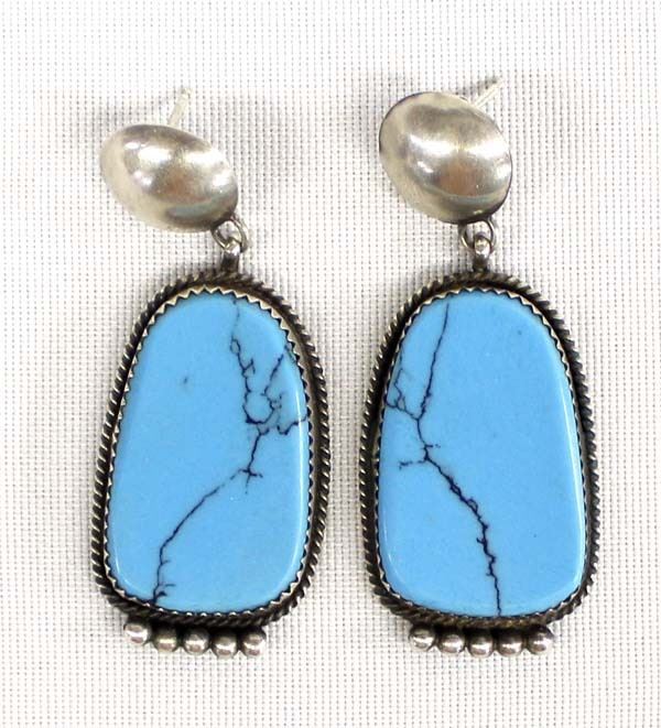 Native American Navajo Sterling Turquoise Earrings by Selena Warner, measure 2''L x 1''W, stamped sterling and hallmarked SW
