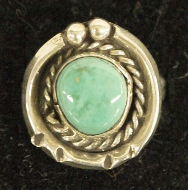 Native American Navajo Sterling Silver Turquoise Ring, 6.5
