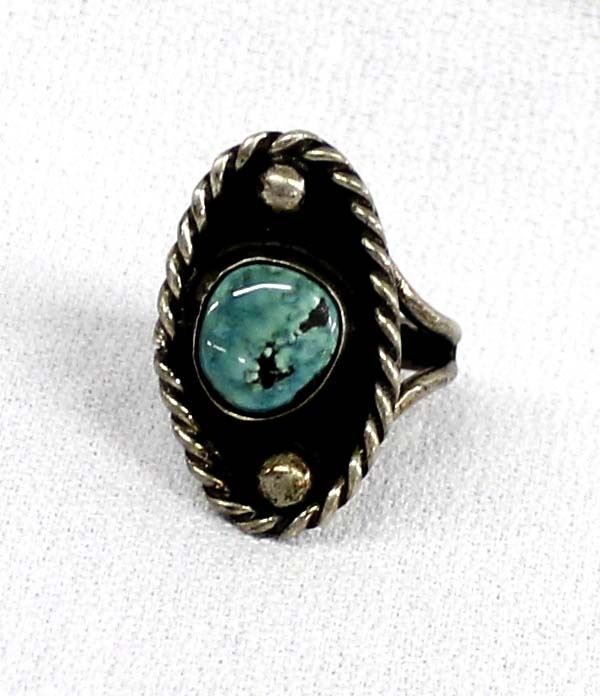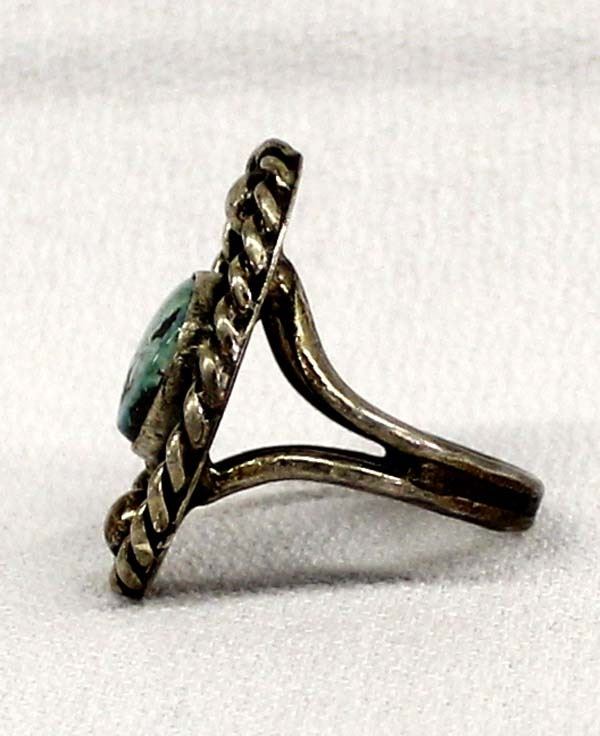 Vintage Native American Navajo Silver Turquoise Ring, Size 6.5, measures 1 1/8'' x .75''