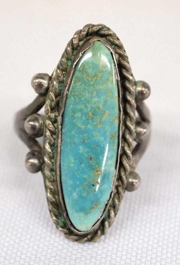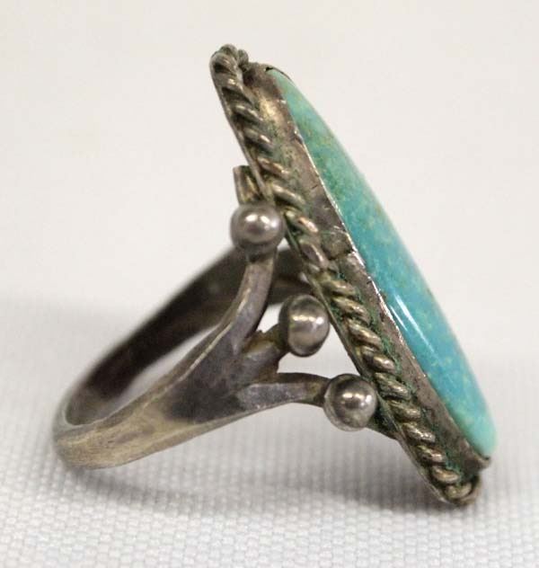 Native American Navajo Silver Turquoise Ring, Size 7.5, measures 1.25''H x .5''W