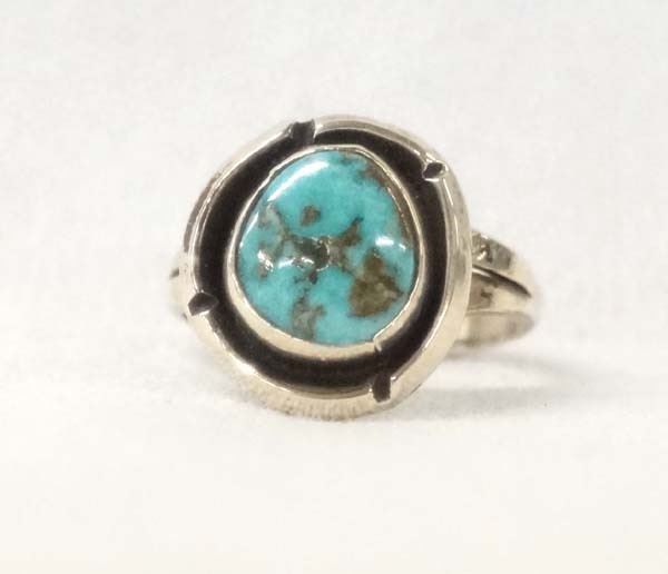 Native American Navajo Silver Turquoise Ring, Size 7.5