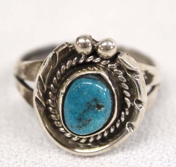 Native American Navajo Sterling Silver Turquoise Ring, Sz 8