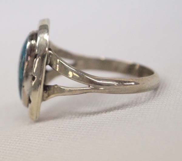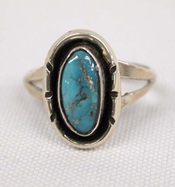 Native American Navajo Sterling Silver Turquoise Ring, Size 8, measures .5''L x .25''W