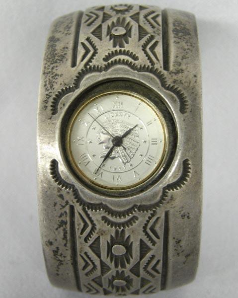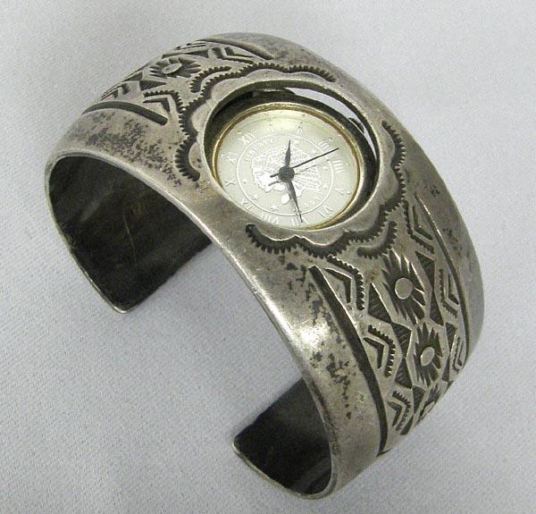 Native American Navajo Silver Watch Band, watch does work. inside measurement 6 3/4'' x 1.25''W. Buyers Pay Actual Shipping and Handling Charges(see terms and conditions for more information)
