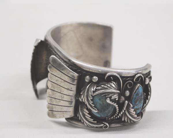 Native American Navajo Silver and Turquoise Watch Band. Measurement in Inches - Inside Length(Including Opening) 7'' x 1 1/3'' Width. Hallmark ''JKC''. Buyers Pay Actual Shipping and Handling Charges(see terms and conditions for more information).