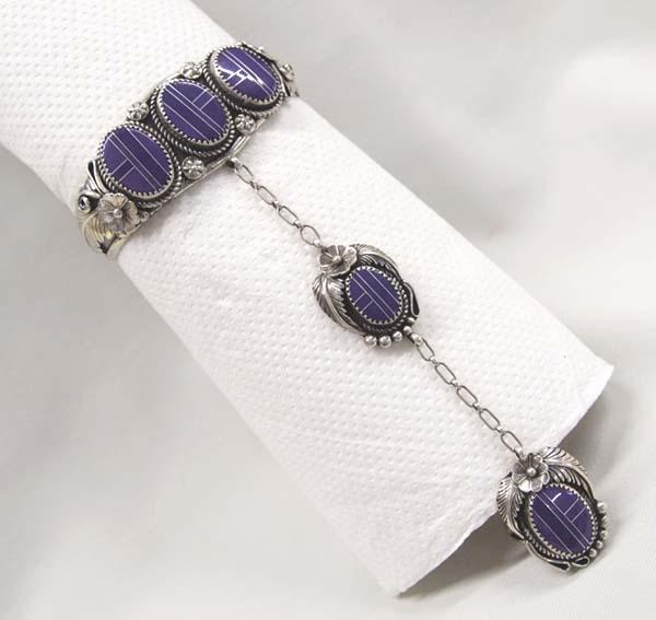 Native American Navajo Silver Sodalite Slave Bracelet hallmarked JA, stamped sterling, inside of bracelet measures 6.5'' and 1''W, ring is a 7.5 and is 1'' x .75''W, centerpiece is 1'' x .75''. Buyers Pay Actual Shipping and Handling Charges(see terms and conditions for more information) .