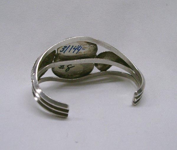 Native American Navajo Sterling Silver & Spiderweb Turquoise Bracelet. Measurement in Inches - Inside Length 6 1/8''(Including Opening)/Width 1 3/8''. Stone 1'' x 5/8'' w. Hallmarked JP. Buyers Pay Actual Shipping and Handling Charges(see terms and conditions for more information)