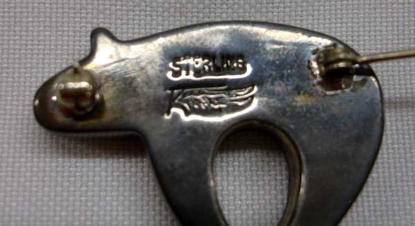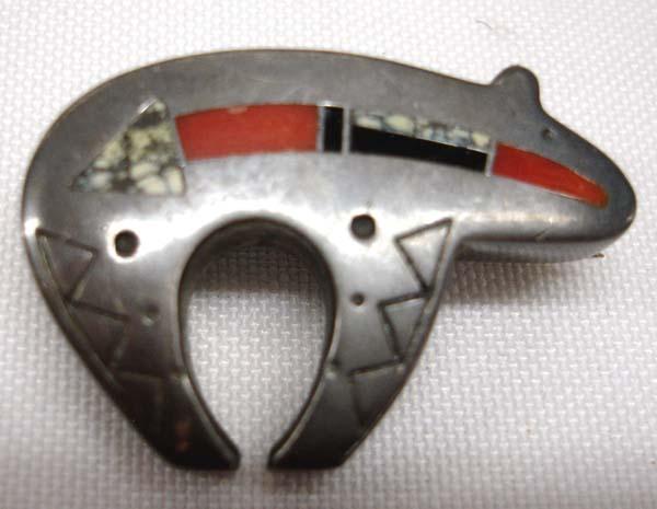 Native American Navajo Sterling Bear Pin With Hallmark. Pin measures 1.25''x1.25''. Buyers Pay Actual Shipping and Handling Charges(see terms and conditions for more information).