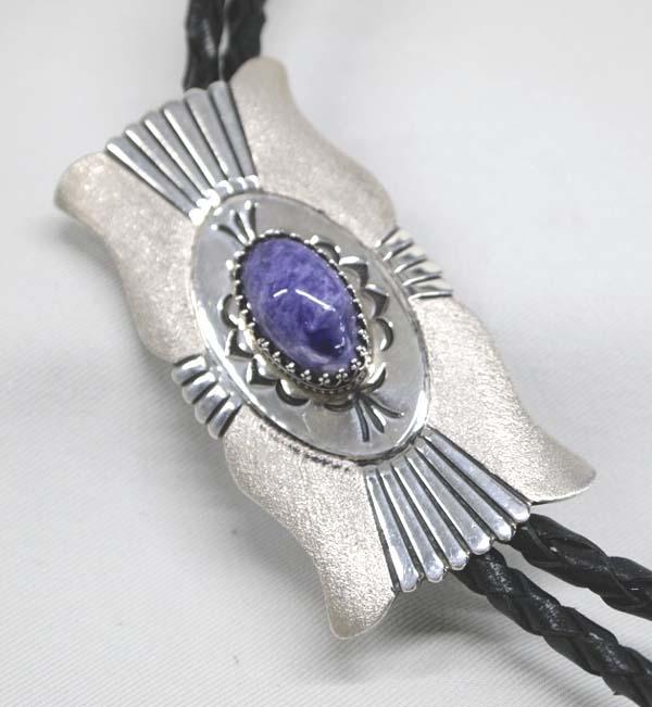 Native American Navajo Sugilite Sterling Bolo by Gary S. Custer, Signed ''GSC'' on back. Slide measures 2.25''x1.25''. Stone is 3/4''x3/8''. Buyers Pay Actual Shipping and Handling Charges(see terms and conditions for more information).