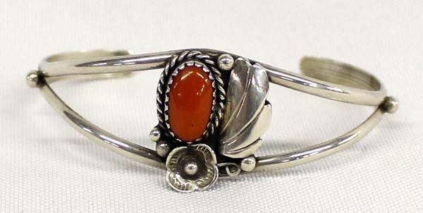 Vintage Native American Navajo Sterling Coral Bracelet, inside measures 6'' (which includes the opening) x 1''W