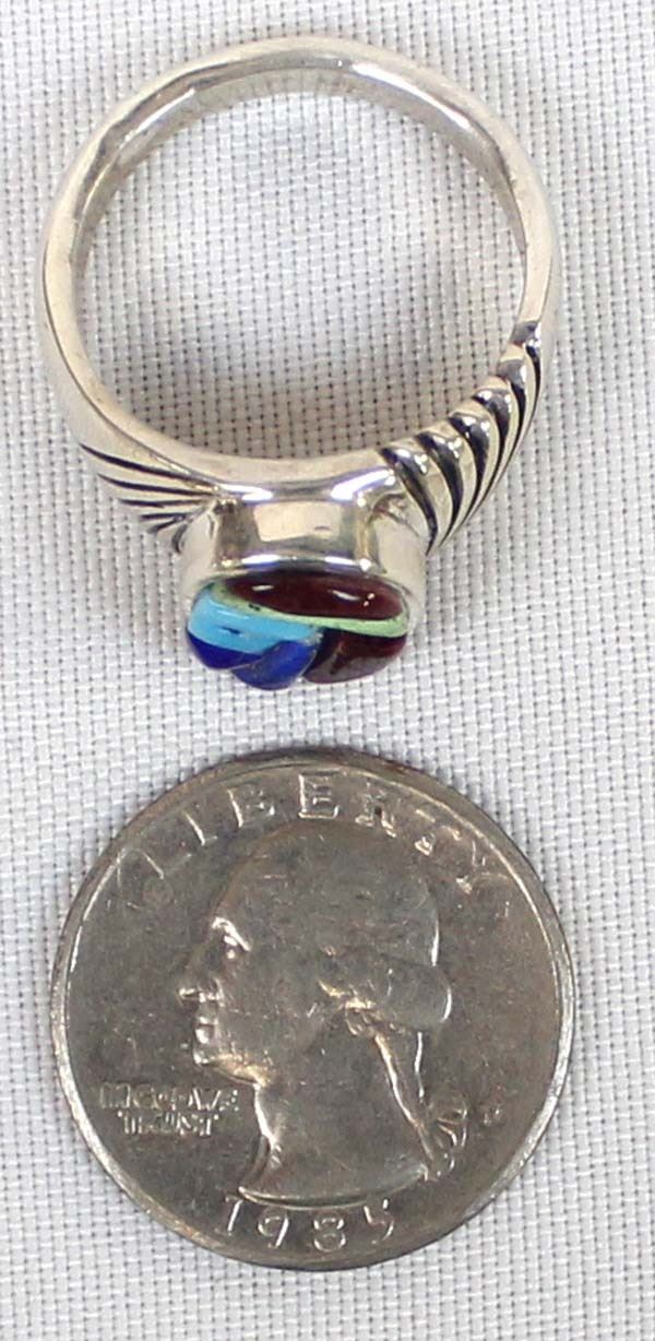Native American Navajo Sterling Inlay Cobblestone Mosaic Ring, Size 11, stamped sterling, includes turquoise, gaspeite, pipestone, and lapis, very flattering on
