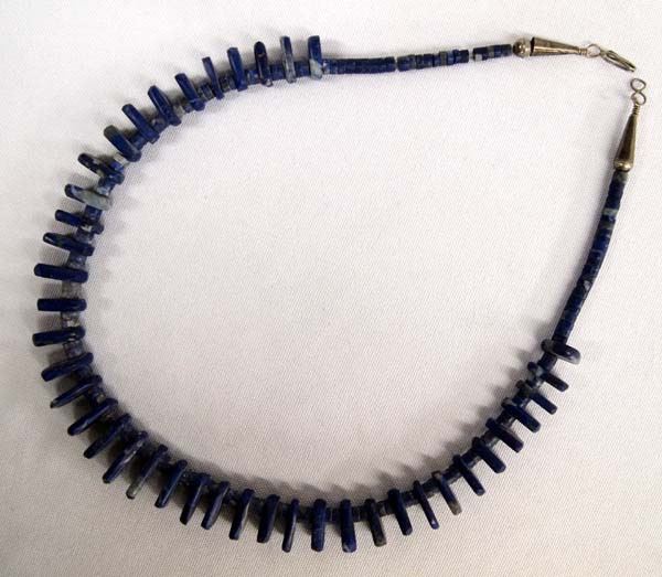Native American Navajo Sterling Lapis Tab Bead Necklace, measures 17'' end to end