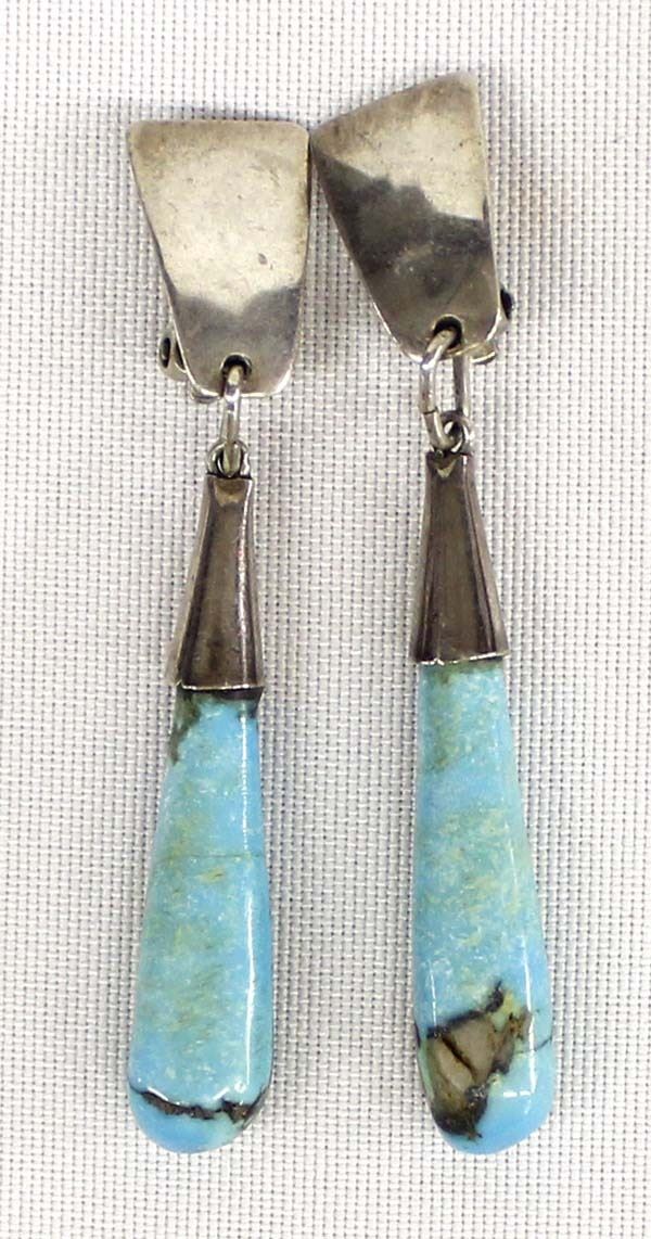 Navajo Sterling Turquoise Clip-On Earrings, measures 2''L
